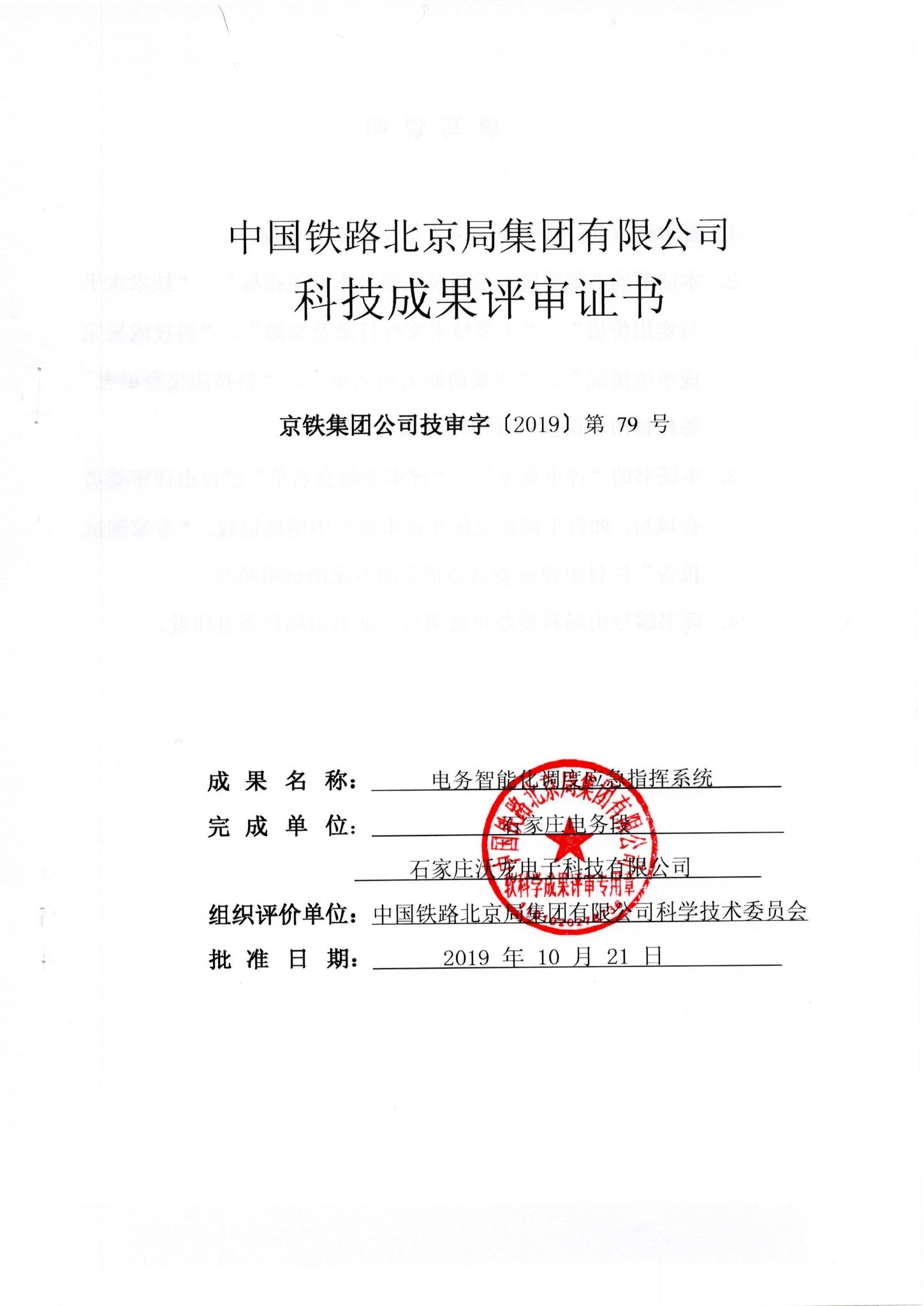 2019年10月21日,“電務智能化調度應急指揮系統”課題通過了中國鐵路北京局集團有限公司科學技術委員會技術評審,評審專家一致認為:該系統達到路內領先水平。